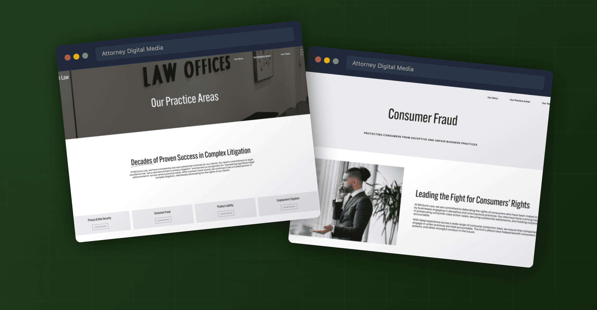 See how Attorney Digital Media helped McGuire Law, P.C. (mcgpc.com) a leading firm in privacy & data security, consumer fraud, and class actions overcome competitive visibility challenges. Through tailored SEO, keyword optimization, authoritative content, and ethical link building, we achieved 65% more organic traffic, first-page rankings for 75% of target keywords, and 45% growth in inquiries, solidifying their leadership in complex litigation.